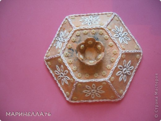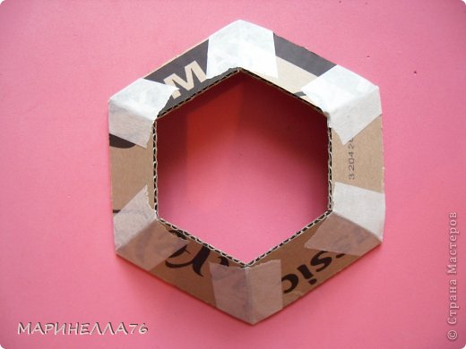 Cartão não muito grosso, mas muito denso. Esculpido em um hexágono. Cada face de -8.5 cm. Cortar pára-choques -8.5 cm em 7,5 cm.