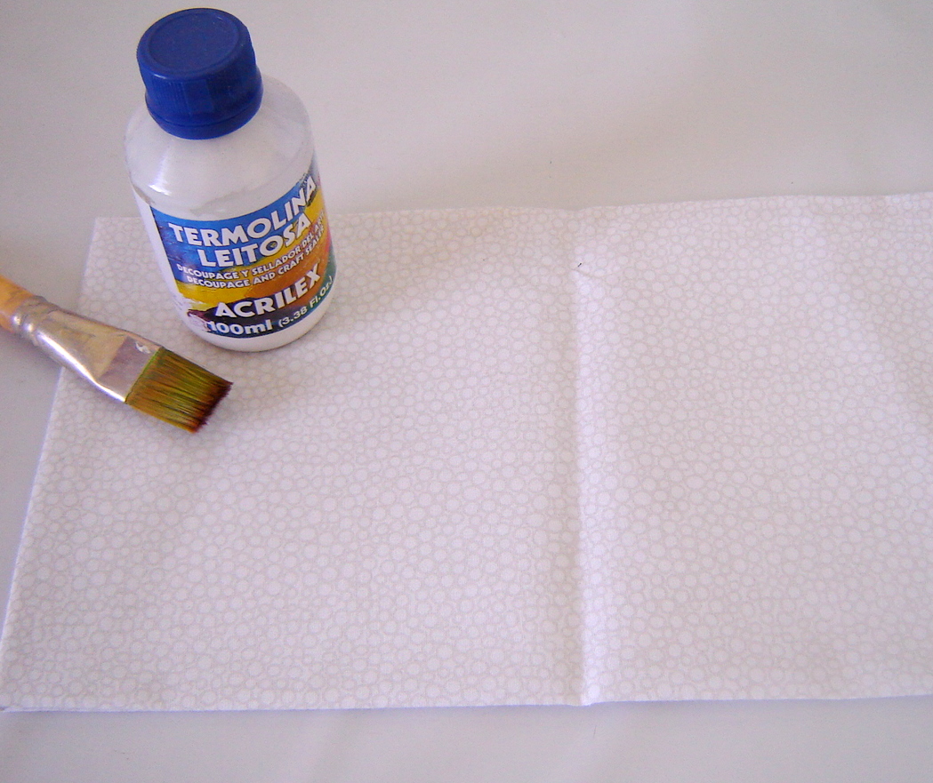 Tecido, pincel e termolina leitosa