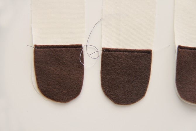 Posicione a lã e costure , na parte de trás desde baixo até bem acima e na parte da frente um pouco acima de onde vai posicionar os olhos.