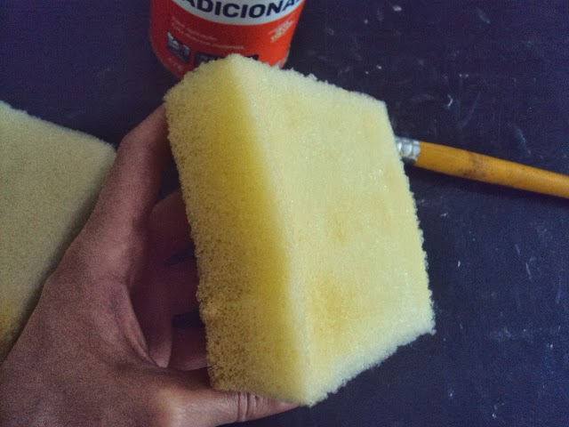 Passe cola também nas cordas, apenas nas pontas que ficarão na parte de dentro da espuma, deixe secar por 15 minutos e comece a juntar as partes